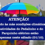 COMUNICADO: Atividades suspensas neste domingo, devido às más condições climáticas