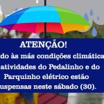 COMUNICADO: Devido às más condições climáticas as atividades no Pedalinho e no Parquinho estão suspensas neste sábado