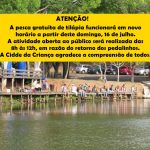 COMUNICADO: Pesca de tilápia está suspensa neste domingo para a realização do ‘Arraiá Cidade da Criança’