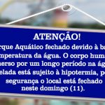 COMUNICADO: Parque Aquático fechado neste domingo por causa das baixas temperaturas