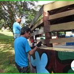Casa do pescador e mesas da área de convivência ganham pintura nova