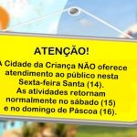 Cidade da Criança não realiza atendimento nesta Sexta-feira Santa