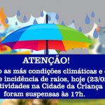 COMUNICADO: Parque Aquático encerra as atividades mais cedo para evitar acidentes ocasionados por raios