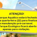 Parque Aquático não realiza atendimento ao público nesta quarta-feira pré-carnaval