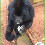 Bugio-preto ‘Remi’ recebe mingau para se aquecer no frio