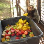 Bióloga e tratadores atuam em conjunto na aplicação da técnica que consiste na introdução de atividades, objetos, desafios ou no oferecimento inusitado de alimentos que pertencem à dieta da espécie. “Os enriquecimentos ambientais realizados foram: alimentar (por se utilizar de alimentos) e cognitivo (por estimular os animais a buscarem soluções para os problemas encontrados na busca pelo alimento)”, explica a bióloga Isabela Alves de Lima Sakita.