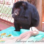 O Remi, bugio-preto (Alouatta caraya) do zoológico do Parque Temático Cidade da Criança, recebeu na última sexta-feira, (14), um Enriquecimento Ambiental especial para comemorar o Dia Mundial do Macaco.