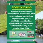 COMUNICADO: A pescaria aberta aos aposentados associados foi transferida de segunda para terça-feira